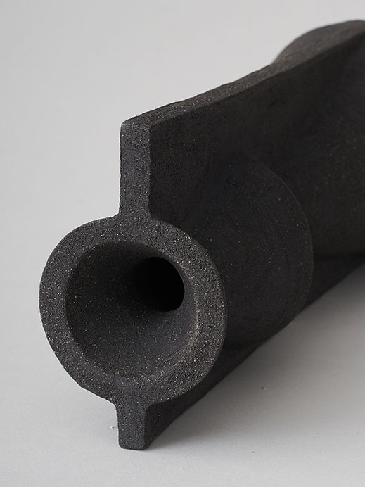 Dopo la cottura l'oggetto risulta ruvido e concreto al tatto, con una texture puntinata data dalla chamotte contenuta nell'impasto.