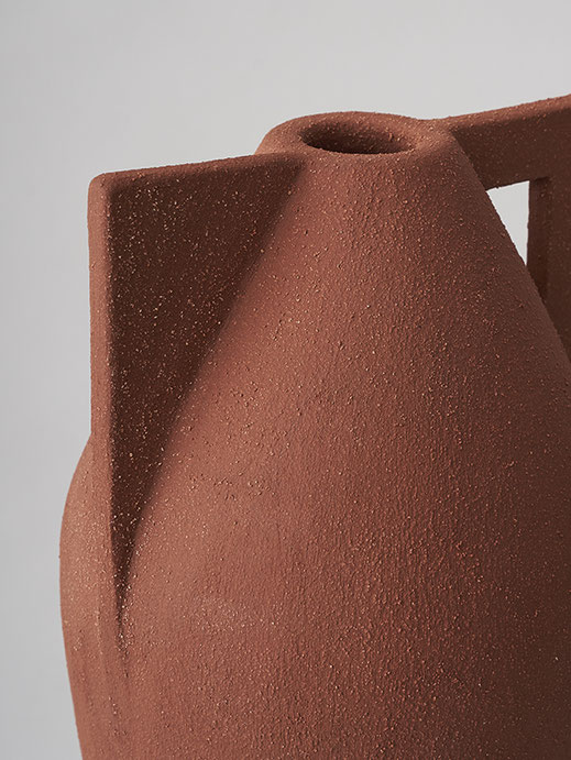 Dopo la cottura l'oggetto risulta ruvido e concreto al tatto, con una texture puntinata data dalla chamotte presente nell'impasto.